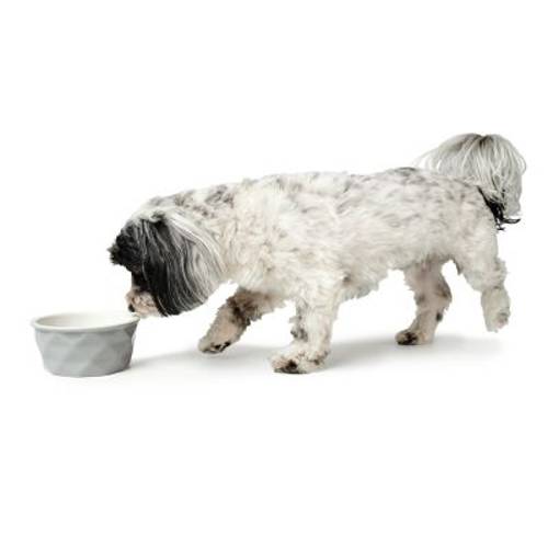 Nowoczesna miska dla psa z bezpiecznej dla żywności ceramiki, ładny wzór w romby, stabilna przez wysoki ciężar, nie rysuje podłogi przez silikonowy pierścień na spodzie, można myć w zmywarce, szara