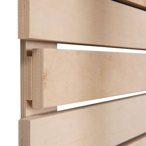 Panele, uchwyty ścienne i platforma wykonane zostały ze sklejki brzozowej bałtyckiej ze zrównoważonej gospodarki leśnej. Wraz z jasnym sizalowym słupkiem doskonale będą one pasować do każdego rodzaju wnętrza.