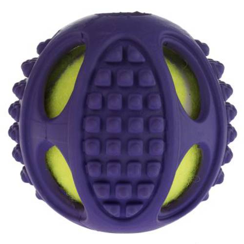 Dwie piłki dla podwójnej radości z zabawy! Wewnątrz piłki z solidnego gumowego tworzywa znajduje się piłeczka tenisowa, której intensywny żółty kolor przedziera się przez dziury w gumowej powierzchni. Wystarczy nacisnąć bądź ugryźć piłkę, a umieszczona wewnątrz piszczałka wyda z siebie głośny dźwięk, który dodatkowo wzbudzi zainteresowanie psa i sprowokuje go do zabawy. Elastyczny materiał sprawia, że piłka po rzuceniu odbija się wysoko od podłoża.Tenisowa piłka dla psa 2 w 1 służy do rzucania, aportowania, podskakuje i wydaje piskliwe odgłosy. Jej powierzchnia ma wypustki, które zachęcają psa do żucia i gryzienia zabawki, przy czym stymulowane są dziąsła jego zębów. Zabawka dostępna jest w dwóch rozmiarach, w zależności od temperamentu i wielkości psa. Ta wyjątkowa piłka o wielu zastosowaniach zapewni Twojemu psu wielu godzin swawolnych zabaw i mnóstwo radości.